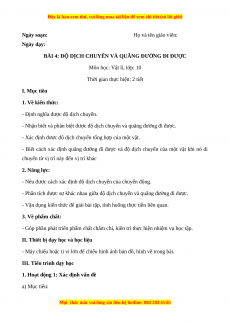Giáo án Bài 4 Vật lí 10 Kết nối tri thức (2024): Độ dịch chuyển và quàng đường đi được
