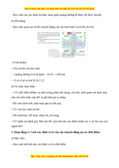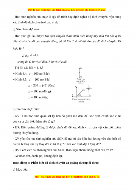- HS định nghĩa độ dịch chuyển, biết cách xác định độ dịch chuyển của vật b) Nội dung: