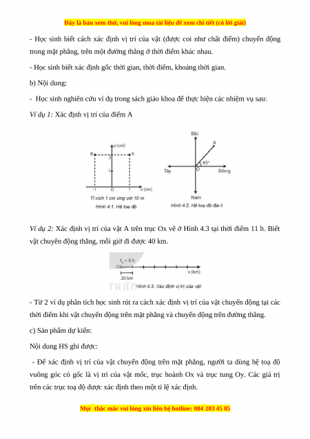 - Từ 2 ví dụ phân tích học sinh rút ra cách xác định vị trí của vật chuyển động tại các