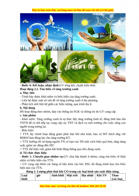 Hoạt động 2.2. Tìm hiểu về tăng trưởng xanh a. Mục tiêu