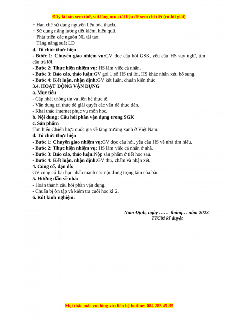 Giáo án Bài 40 Địa lí 10 Kết nối tri thức (2024): Phát triển bền vững và tăng trưởng xanh