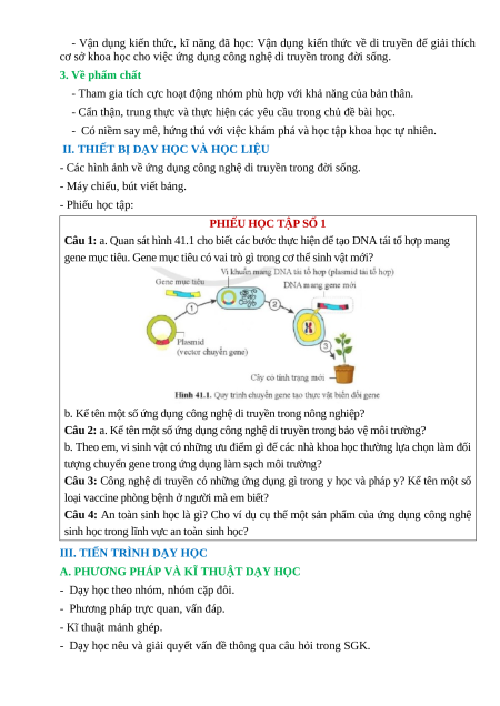 - Tự chủ và tự học: Chủ động, tích cực tìm hiểu về ứng dụng công nghệ di truyền