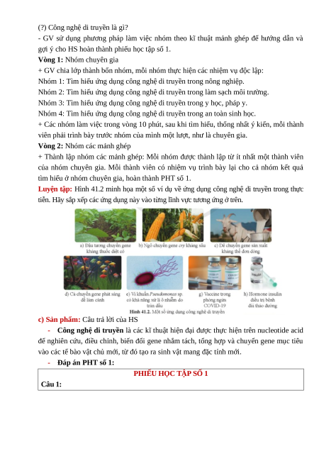 Giáo án Bài 41 KHTN 9 Cánh diều (2024): Ứng dụng công nghệ di truyền vào đời sống