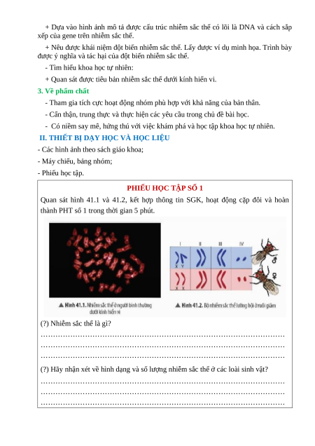 + Quan sát được tiêu bản nhiễm sắc thể dưới kính hiển vi. 3. Về phẩm chất