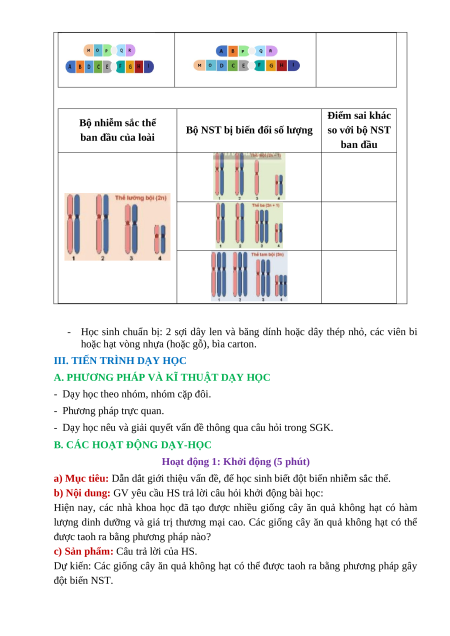 - Tự chủ và tự học: Chủ động, tự tìm hiểu về cấu trúc nhiễm sắc thể và đột biến NST. - Giao tiếp và hợp tác: