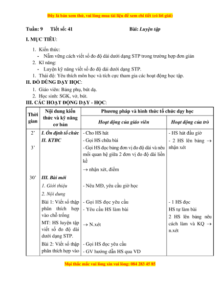 - Nẵm vững cách viết số đo độ dài dưới dạng STP trong trường hợp đơn giản 2. Kĩ năng: