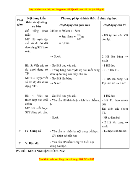 - Nẵm vững cách viết số đo độ dài dưới dạng STP trong trường hợp đơn giản