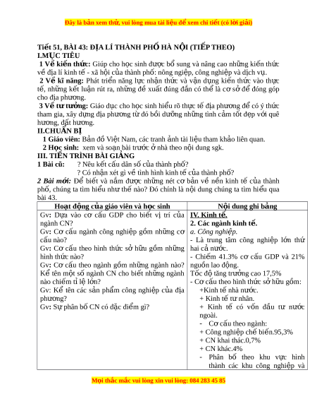 ế 51, BÀI 43: ĐỊA LÍ THÀNH PH H Ố À N I Ộ (TI P Ế THEO) I.M C Ụ TIÊU 1 Về ki n ế th c: ứ Giúp cho h c ọ sinh đư c