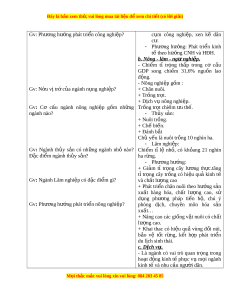 ế à nuôi trồng 10 nghìn ha. - Lâm nghi p: ệ Gv: Ngành th y ủ s n ả có nh ng ữ ngành nhỏ nào? Chi m ế tỉ lệ nh , ỏ có kh ang ỏ 21 nghìn Đặc đi m ể ngành th y s ủ n? ả ha r ng. ừ - Phư ng ơ hư ng: ớ + Gi m ả tỉ tr ng ọ cây lư ng ơ th c.t ự ăng tỉ tr ng ọ cây tr ng ồ có hi u ệ quả kinh tế