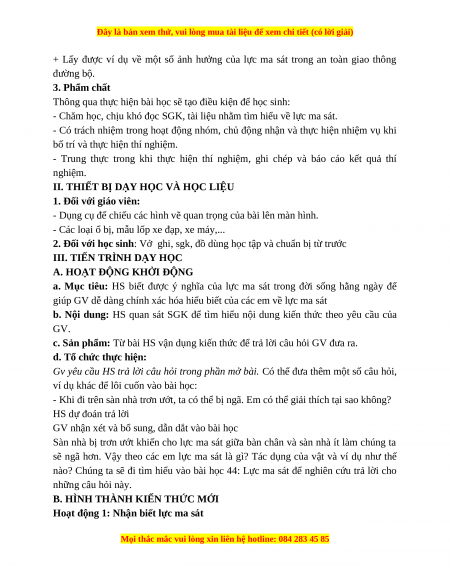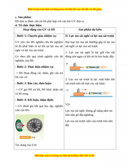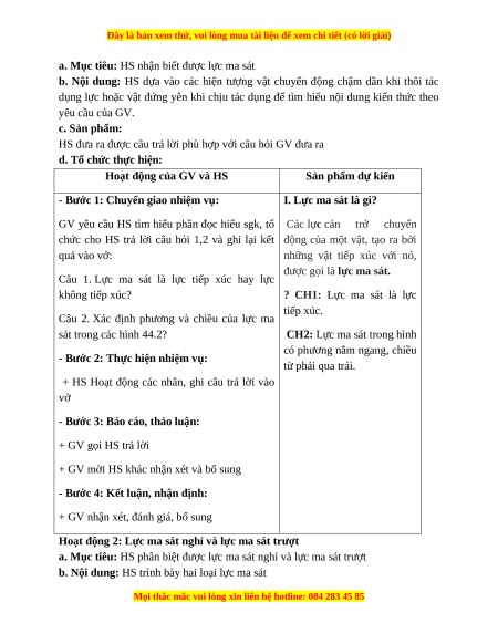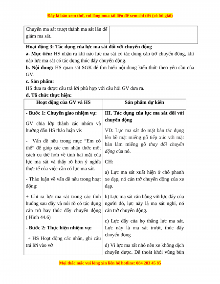 Giáo án Bài 44 KHTN 6 Kết nối tri thức (2024): Lực ma sát