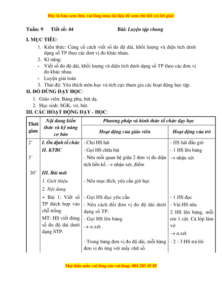 Tuần: 9 Tiết số: 44 Bài: Luyện tập chung