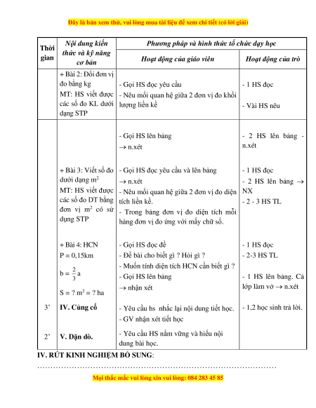 - Viết số đo độ dài, khối lượng và diện tích dưới dạng số TP theo các đơn vị đo khác nhau. - Luyện giải toán