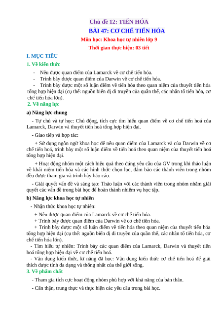Giáo án Bài 47 KHTN 9 Chân trời sáng tạo (2024): Cơ chế tiến hoá