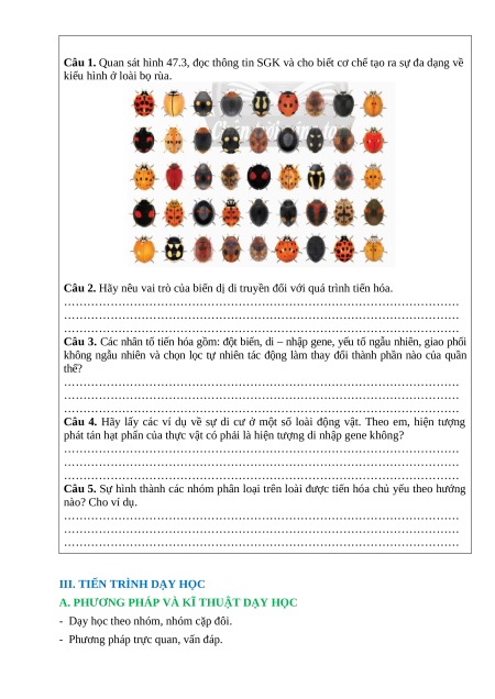 Câu 1. Quan sát hình 47.3, đọc thông tin SGK và cho biết cơ chế tạo ra sự đa dạng về