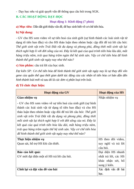 - Tự chủ và tự học: Chủ động, tích cực tìm hiểu quan điểm về cơ chế tiến hoá của