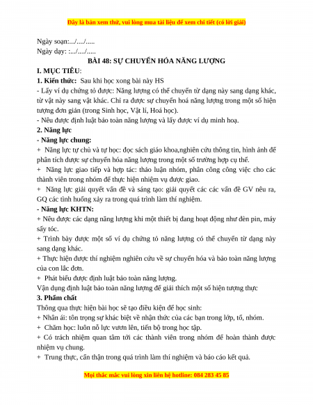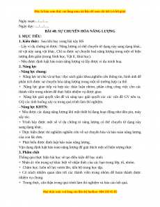 BÀI 48: SỰ CHUYỂN HÓA NĂNG LƯỢNG I. MỤC TIÊU:
