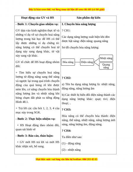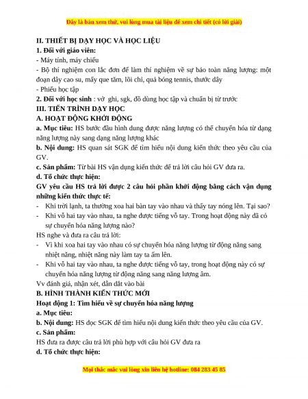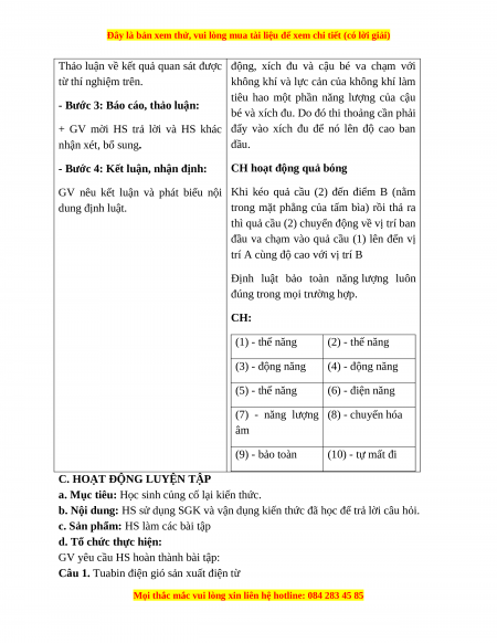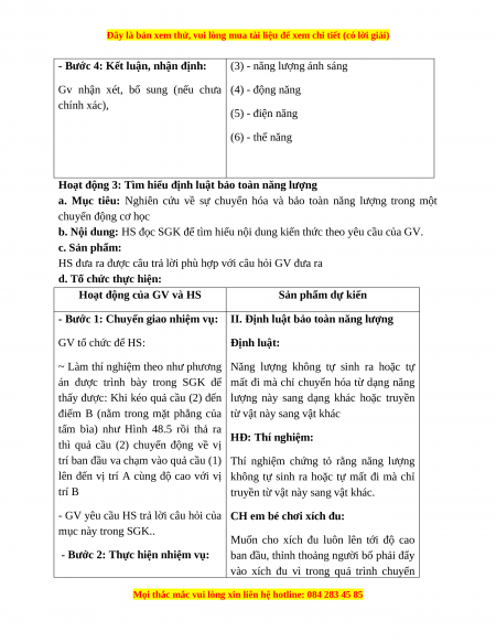 án được trình bày trong SGK để mất đi mà chỉ chuyển hóa từ dạng năng