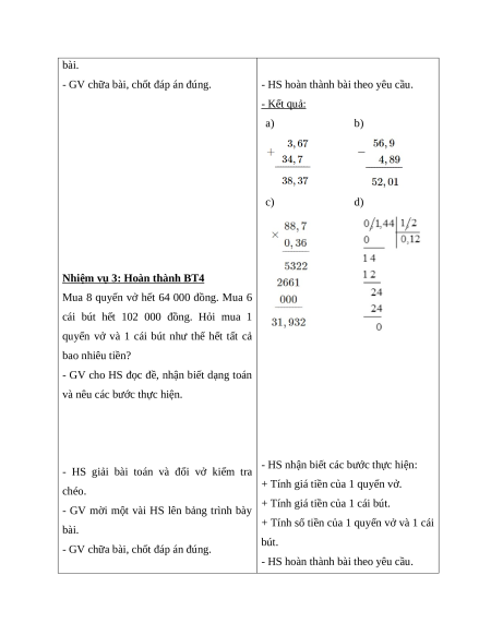 - Củng cố các kĩ năng thực hiện các phép tính với số thập phân.