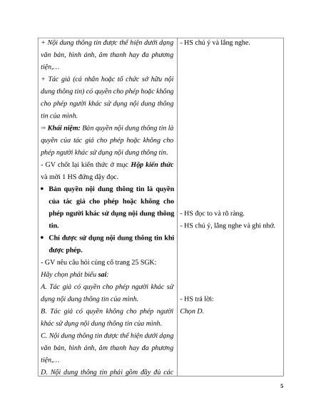 Giáo án Bài 5: Bản quyền nội dung thông tin Tin học lớp 5 Kết nối tri thức