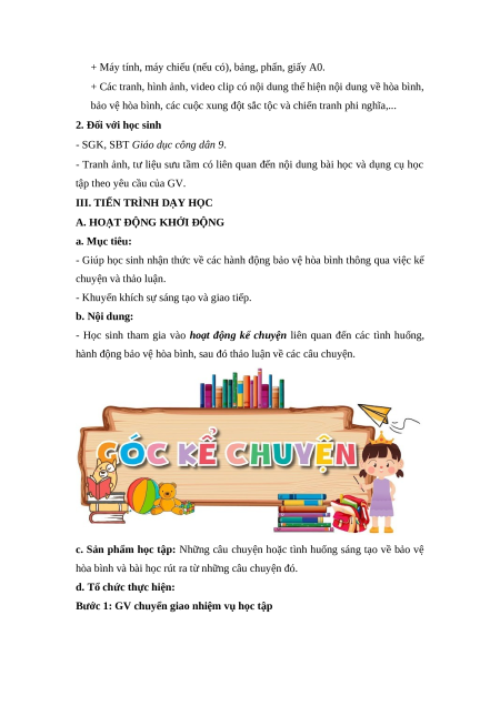 - Giúp học sinh nhận thức về các hành động bảo vệ hòa bình thông qua việc kể chuyện và thảo luận.