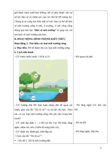 a. Mục tiêu: HS kể được tên các loại môi trường sống. b. Cách tiến hành