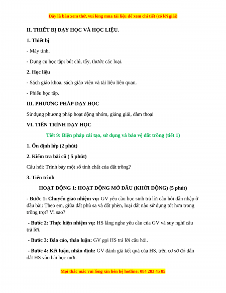 Tiết 9: Biện pháp cải tạo, sử dụng và bảo vệ đất trồng (tiết 1)