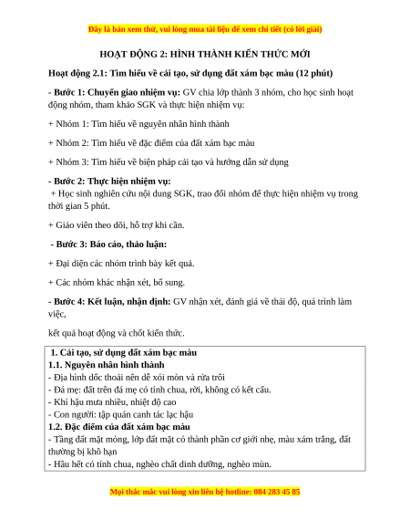 Hoạt động 2.1: Tìm hiểu về cải tạo, sử dụng đất xám bạc màu (12 phút)