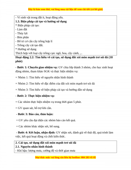 Hoạt động 2.2: Tìm hiểu về cải tạo, sử dụng đất xói mòn mạnh trơ sỏi đá (18