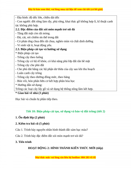 Tiết 10: Biện pháp cải tạo, sử dụng và bảo vệ đất trồng (tiết 2)