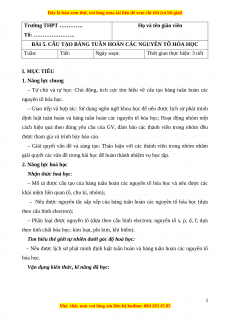 – Mô tả được cấu tạo của bảng tuần hoàn các nguyên tố hóa học và nêu được các