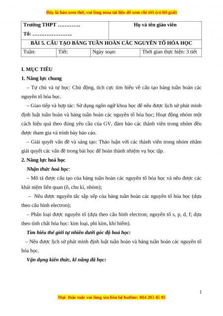 BÀI 5. CẤU TẠO BẢNG TUẦN HOÀN CÁC NGUYÊN TỐ HÓA HỌC Tuần: Tiết: Ngày soạn: