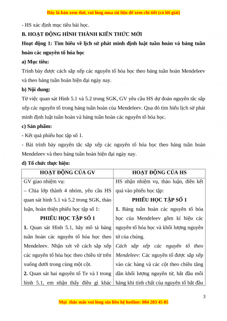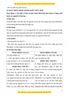 minh định luật tuần hoàn và bảng tuần hoàn các nguyên tố hóa học. c) Sản phẩm: