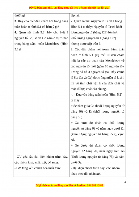 4. - Dựa vào bảng tuần hoàn (Hình 5.2) ta thấy: