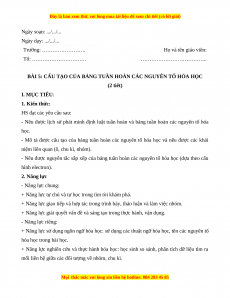- Nêu được nguyên tắc sắp xếp của bảng tuần hoàn các nguyên tố hóa học (dựa theo cấu hình electron). 2. Năng lực - Năng lực chung: