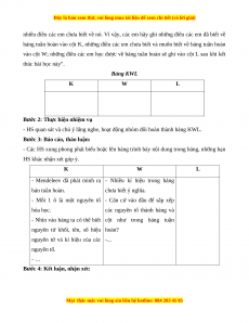 vào cột W; những điều các em học được về bảng tuần hoàn sẽ ghi vào cột L sau khi kết thúc bài học này”. Bảng KWL K W L