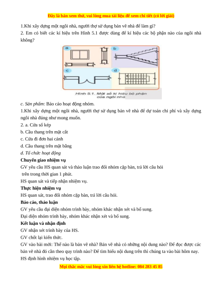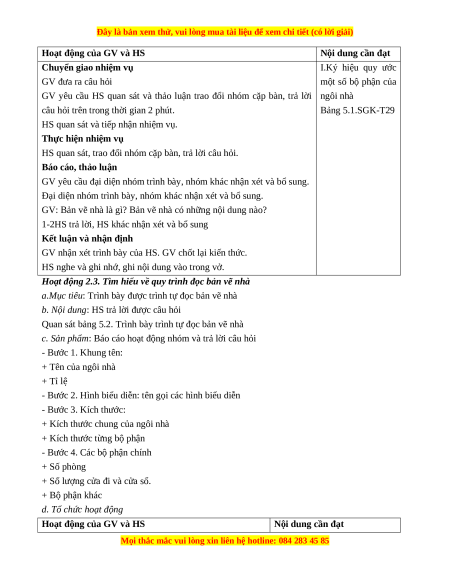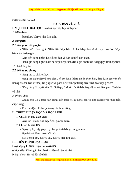 - Năng lực giải quyết vấn đề: Giải quyết được các tình huống đặt ra có liên quan đến bản vẽ nhà. 3. Phẩm chất