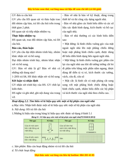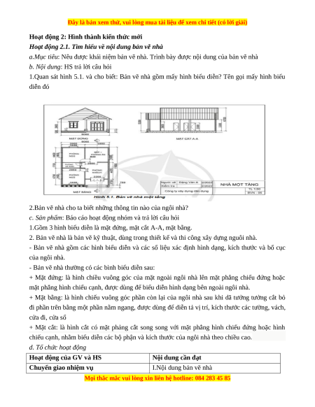 Hoạt động 2.1. Tìm hiểu về nội dung bản vẽ nhà