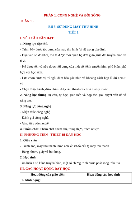 PHẦN 1. CÔNG NGHỆ VÀ ĐỜI SỐNG TUẦN 13
