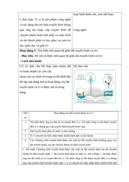 - Mục tiêu: HS mô tả được mối quan hệ giữa đài truyền hình và tivi - Cách tiến hành: