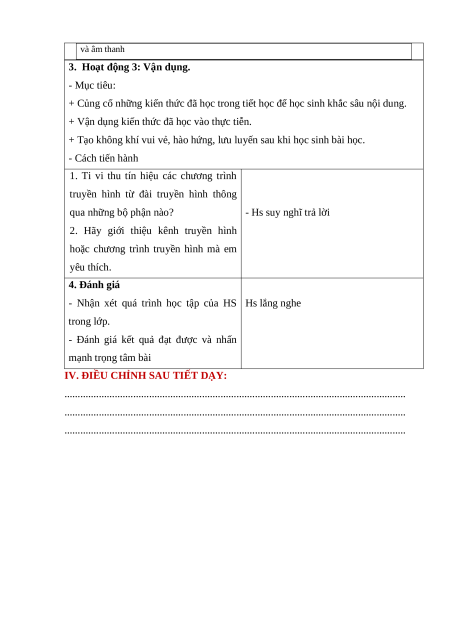 IV. ĐIỀU CHỈNH SAU TIẾT DẠY: