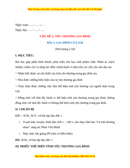 III. PHIẾU THỂ HIỆN TÌNH YÊU THƯƠNG GIA ĐÌNH