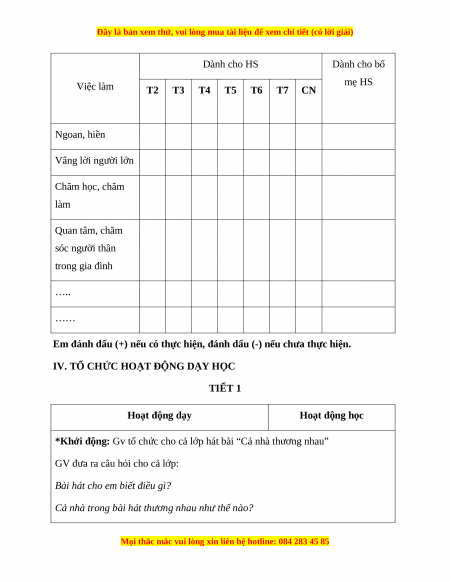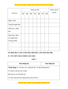 Em đánh dấu (+) nếu có thực hiện, đánh dấu (-) nếu chưa thực hiện.