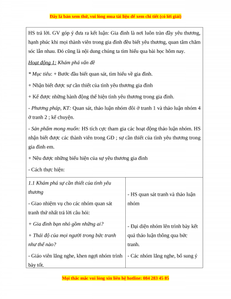 + Nhận biết được sự cần thiết của tình yêu thương gia đình