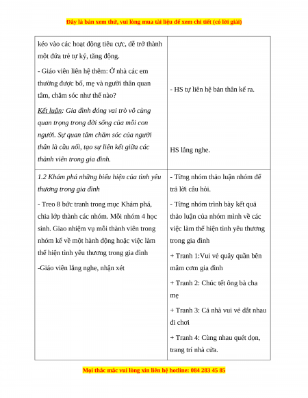 HS trả lời. GV góp ý đưa ra kết luận: Gia đình là nơi luôn tràn đầy yêu thương,