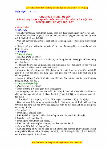 BÀI 5 (3 tiết). THẠCH QUYỂN. NỘI LỰC VÀ TÁC ĐỘNG CỦA NỘI LỰC