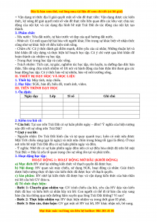 III. TIẾN TRÌNH DẠY HỌC 1. Ổn định: Ngày dạy Lớp Sĩ số Ghi chú