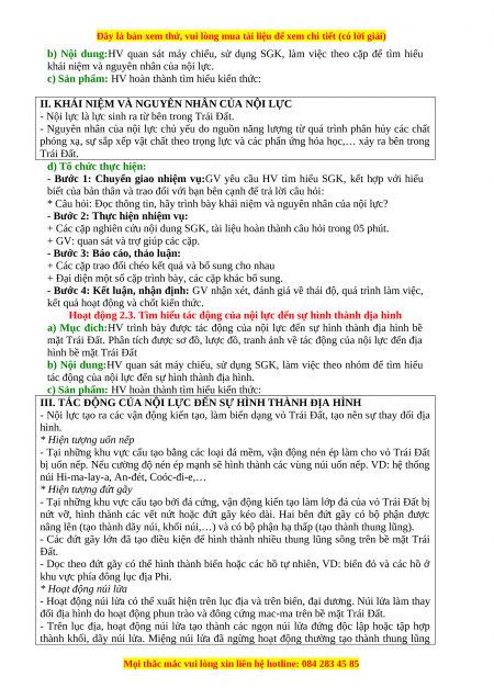 động của nội lực và các dạng địa hình bề mặt Trái Đất do tác động của nội lực tạo thành. 3. Phẩm chất: