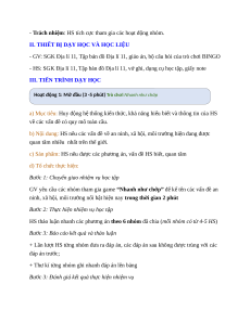 - HS thực hiện nhiệm vụ: theo nhiệm vụ GV đã giao trong từng tiết cụ thể