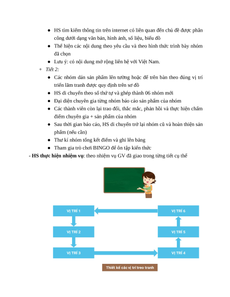 ● GV chia lớp thành 06 nhóm, đánh số thứ tự và ngồi theo vị trí được chỉ định