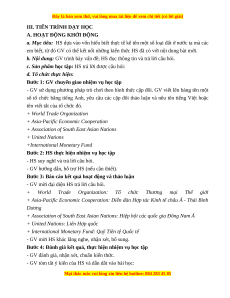 - Bước 5: GV đặt thêm câu hỏi để mở rộng thêm vấn đề cho học sinh” Liệt kê những
